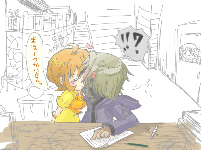 不意打ちチューで赤くなる魔法使い。